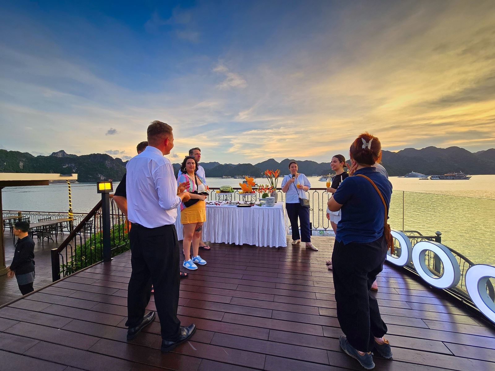 Elevate your journey on our stunning Infinity Deck, a premier sanctuary designed for life’s most beautiful moments. Whether you are planning a romantic proposal under the stars, enjoying a sophisticated afternoon tea, or sipping sunset cocktails, this breathtaking space offers an uninterrupted 360-degree panorama of Lan Ha Bay's emerald waters.