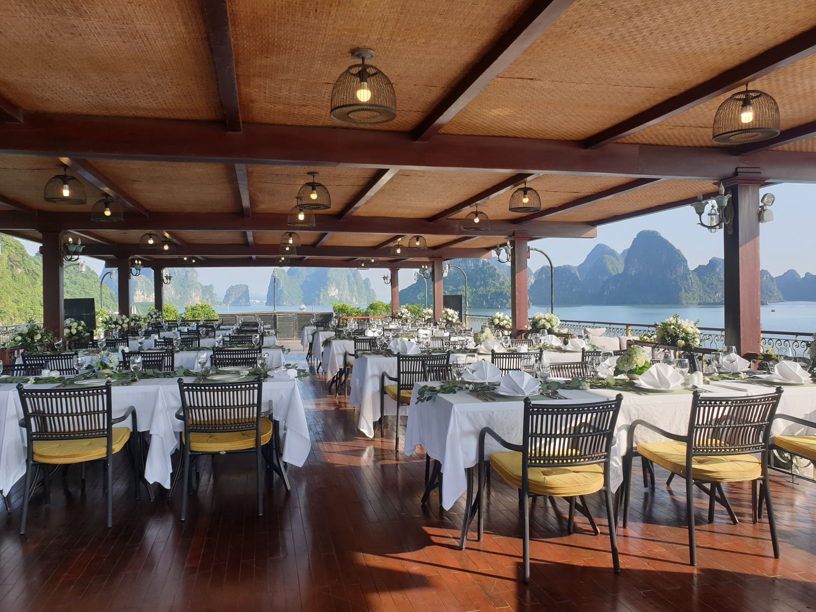 Experience the height of luxury at our 350m² Sky Lounge, the only venue in the bay to offer a premier rooftop lunch experience. Featuring panoramic 360° views and a versatile design, you can indulge in world-class dining while surrounded by the beauty of Lan Ha Bay, rain or shine.