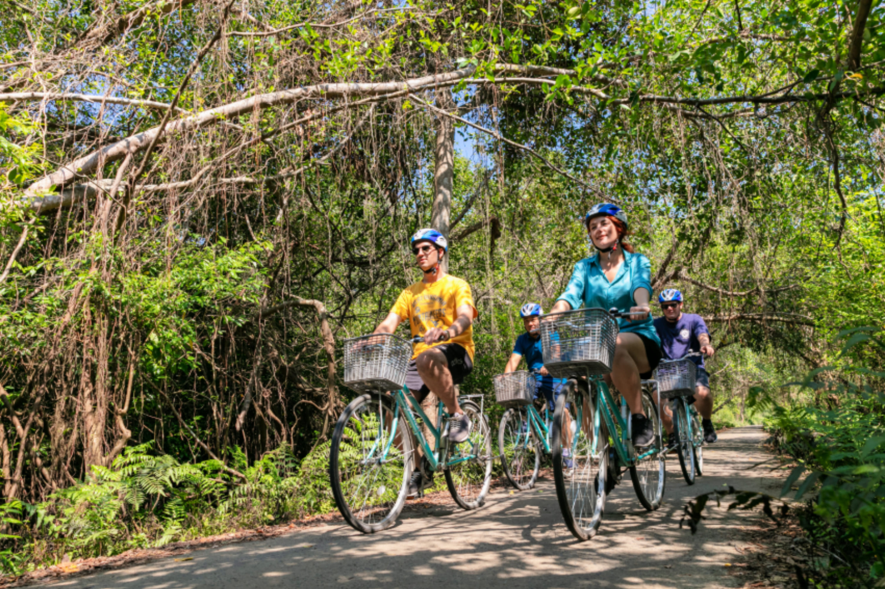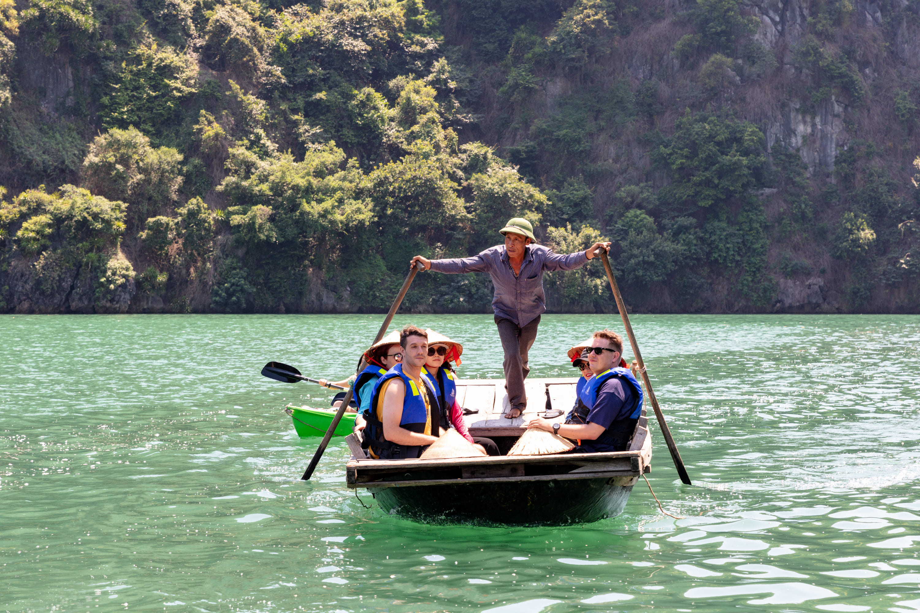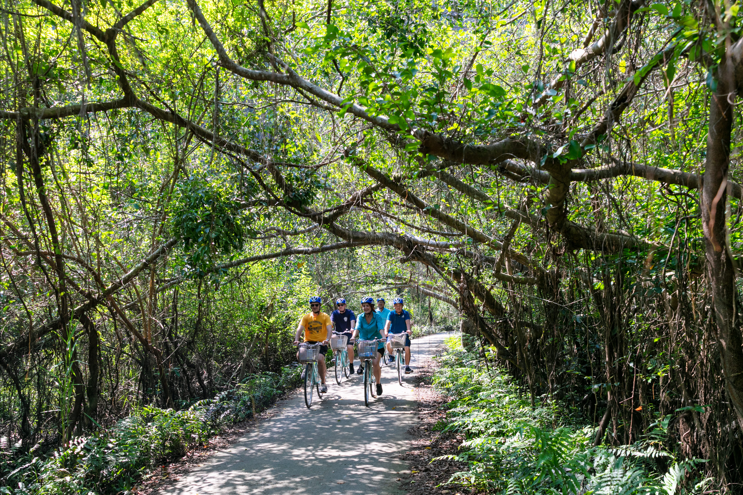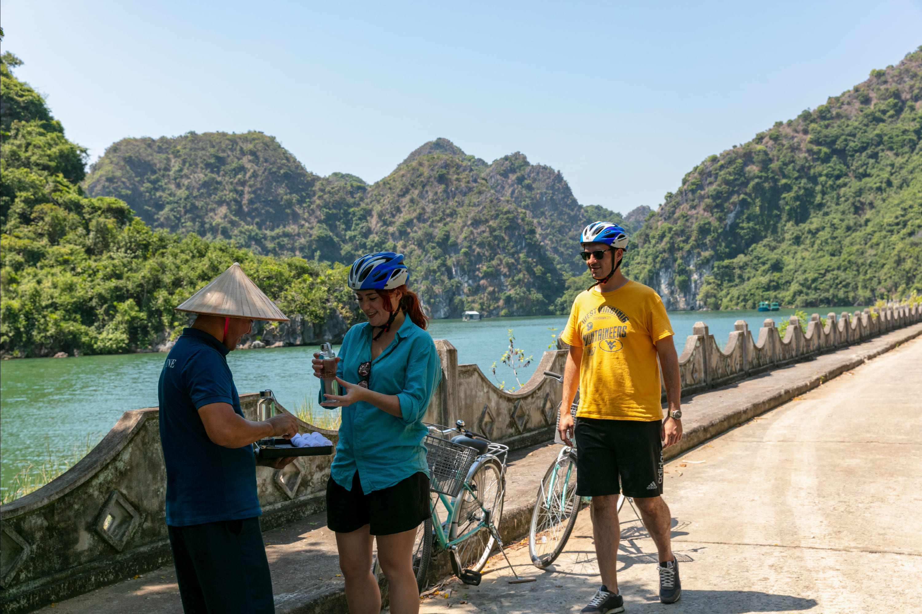 To embark on an authentic short adventure, you will transfer from our luxurious cruise to a local boutique day boat for an unforgettable traditional Vietnamese voyage to Viet Hai village, where we will walk around the idyllic enclave and see the residents' fabulously rustic homes. We then ride our bicycles or electric vans down village paths to enjoy some of Cat Ba Island's stunning landscape.