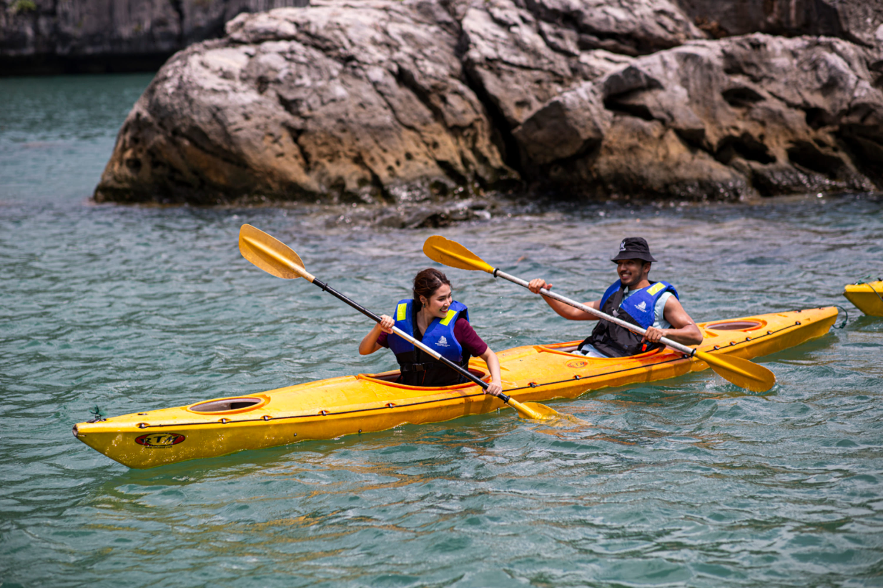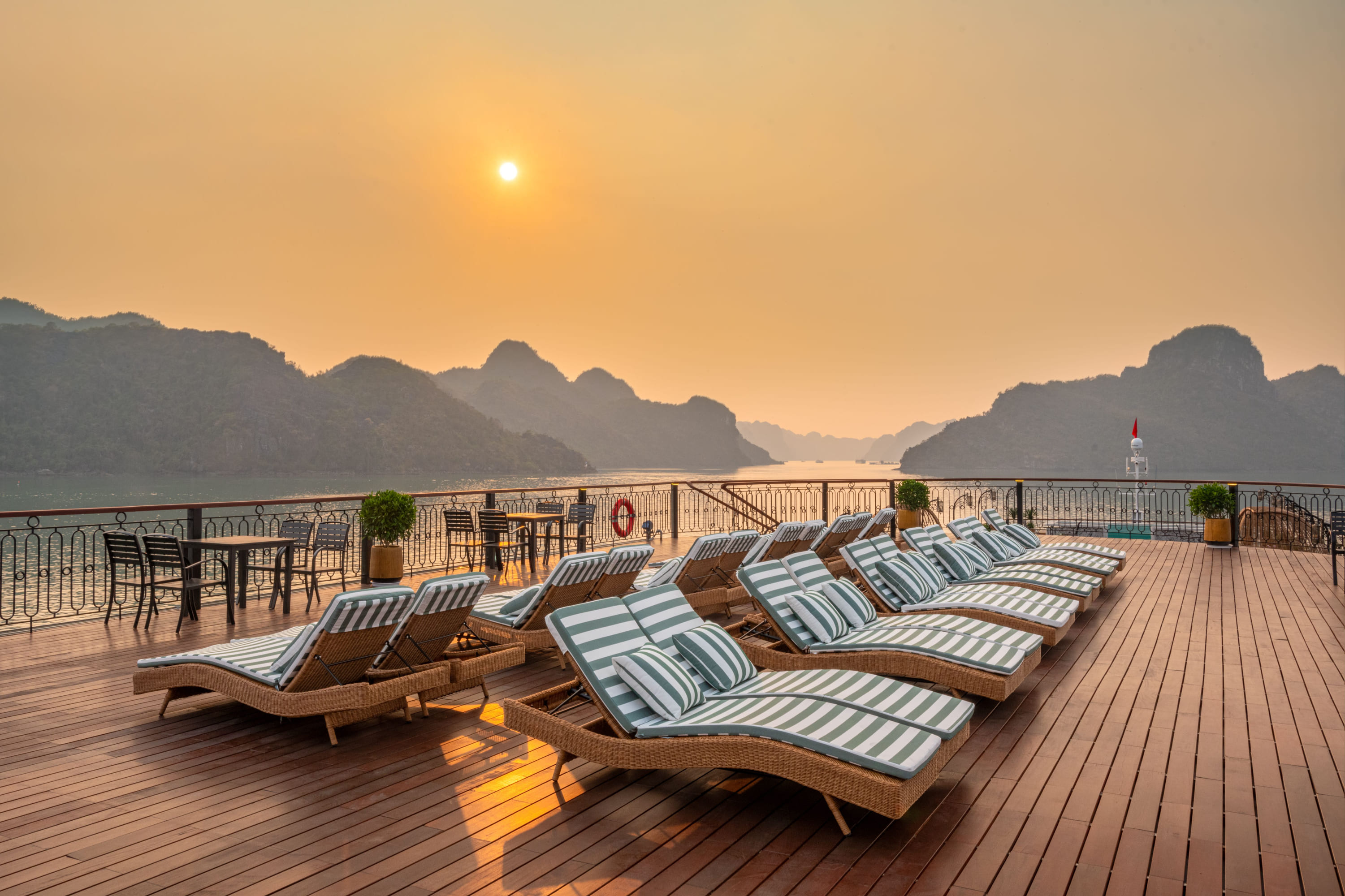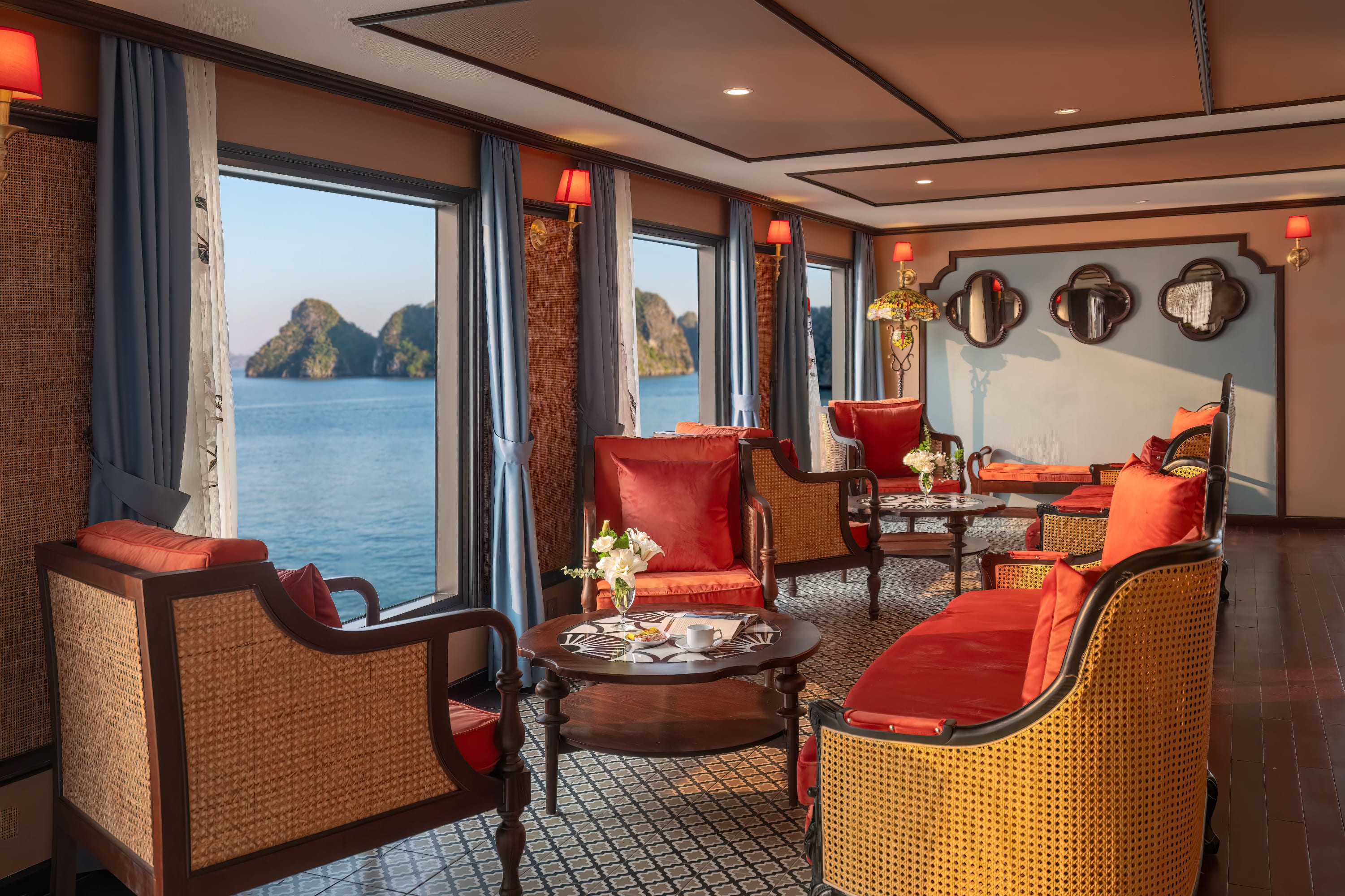 Enjoy a delicious buffet lunch at the restaurant as you sail past Lan Ha Bay’s stunning islands.